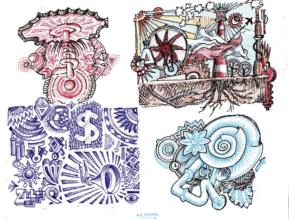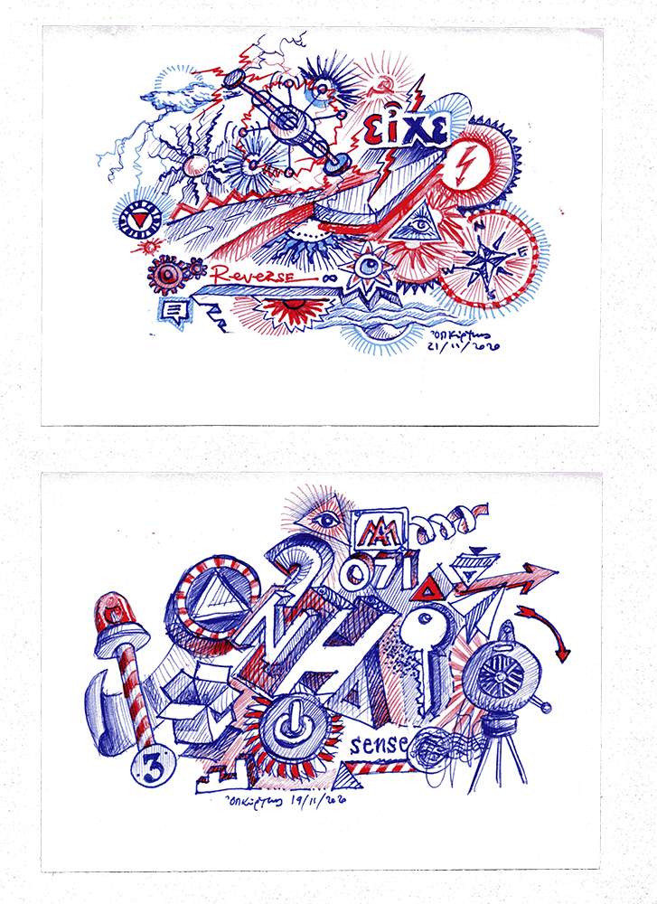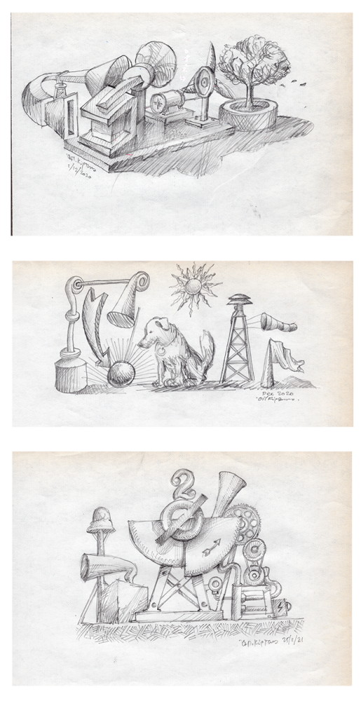 Τα «Τηλεφωνικά Ασυνείδητα» είναι ζωντανά κύτταρα που αναπαράγονται μέσω της αυτόματης γραφής συνειρμών που συμβολοποιούνται. Η μόνη προσπάθεια κατά την εξέλιξή τους είναι να μην ξεφύγουν από αυτή την άναρχη σύμβαση ή καλύτερα να περιοριστεί ο έλεγχος και η αναδόμησή τους, να παρέμβει ελάχιστα η λογική της σύνθεσης κυριαρχώντας η ενστικτώδης αισθητική, παρασυρμένη από τις λιγότερο θεατές πτυχές του νου. Δημιουργούνται εν μέσω μη δημιουργικών ενασχολήσεων - όπως τα τηλεφωνήματα - και για να ωριμάσουν απαιτείται ουδέτερος χρόνος. Αποτελούν κώδικες που η αποκρυπτογράφησή τους εκπλήσσει ακόμη και τον δημιουργό τους, όμως δεν αποκαλύπτουν μία αμιγώς προσωπική ψυχανάλυση του εικαστικού υποκειμένου, παρά τα επαναλαμβανόμενα «κατατεθέντα» αυτοαναφορικά σήματα. Αποκτούν προοδευτικά τον χαρακτήρα χαρτογράφησης συλλογικών νευρώσεων, με τη συμβολή της ασυνείδητης ασυδοσίας των ονείρων, αλλά ταυτόχρονα και με αμείλικτο υλισμό, δημιουργώντας την αντίφαση ενός σουρεαλιστικού τοπίου με θαυματουργικές προεκτάσεις, υφασμένου με ρεαλιστικά υλικά σχεδόν μαθηματικής συναρμογής.