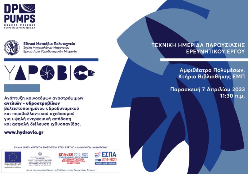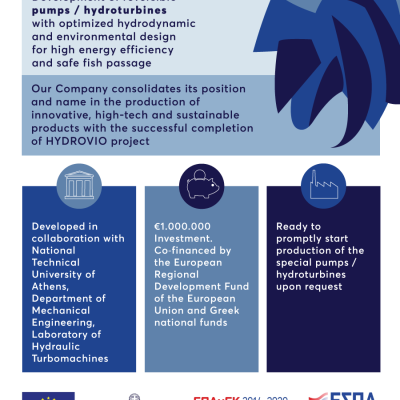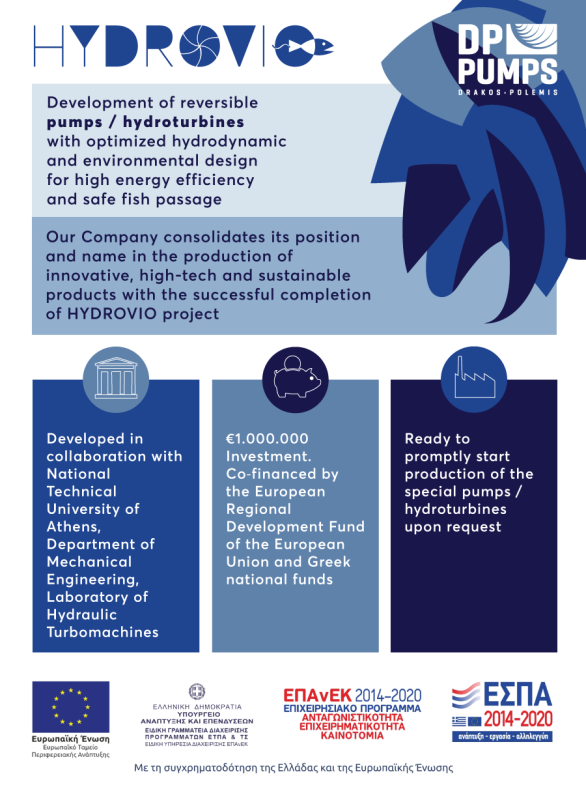 The Hydrovio project: National Technical University of Athens and Drakos-Polemis Pumps Manufacturers, join forces to develop a unique, innovative and sustainable design; efficient reversible pumps / hydroturbines for safe fish passage.