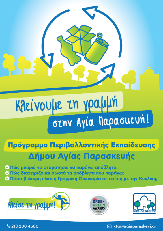 Το βραβευμένο πρόγραμμα περιβαλλοντικής εκπαίδευσης «Κλείσε τη Γραμμή!» σχεδιάστηκε και υλοποιείται από τον Δήμο Αγίας Παρασκευής.