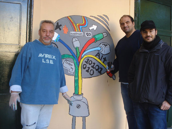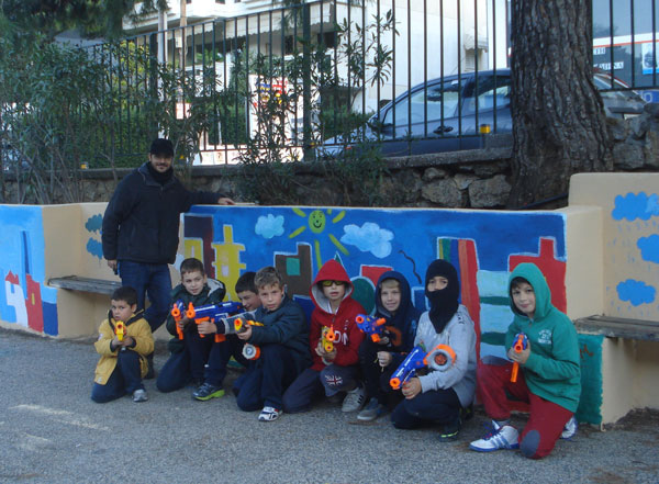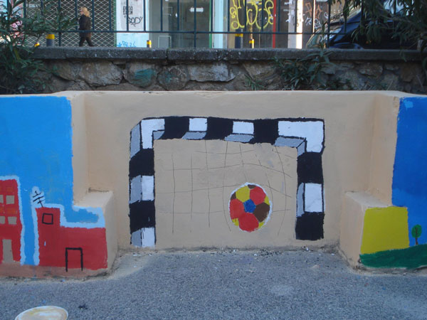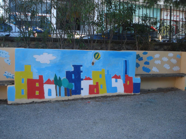 Εικαστική Δράση στο 1ο Δημ. σχολείο Αγ. Παρασκευής, όπου με γονείς και μαθητές δημιουργήσαμε εικόνες στο προαύλιο.