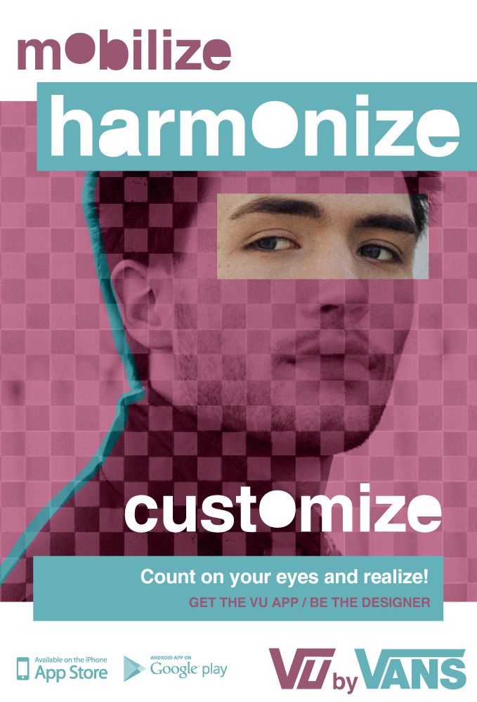 The concept is built around a primary wordplay – a rhyme between words that express creativity and action with the suffix -ize and the actual word eye in plural, that is ‘eyes’. Eyes symbolize the vision and every visual process, and more than that visual expression. This connection is supported in the second tagline ‘count on your eyes and realize’ where visual expression and creativity lead to actual realization of the garments. The word mobilize is another wordplay: taking action with the use of the mobile phone; a reference to the actual downloadable application for the mobile device. While ‘mobilize and customize’ are common in all visuals, the central tagline differs in every execution; is the one that conveys inspiration.